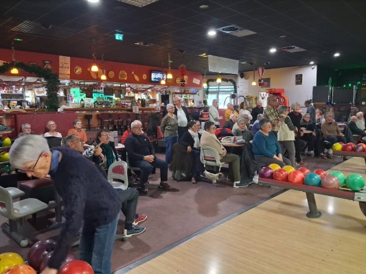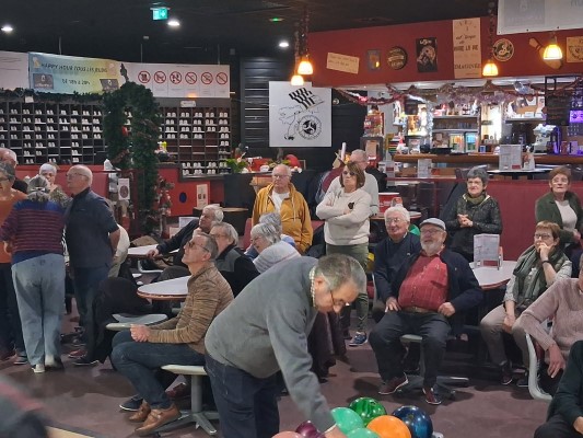 C’est pas moins de 47 joueurs qui se sont affrontés lors de cette dernière sortie Bowling de l’année au Skittle de Vitré. Si notre champion toutes catégories, Jean HASLÉ, a encore fait parler la foudre, cette fois-ci, il a battu tous les records avec 283 points. Peut-être l’effet de la cuisse de pintade sur vitaminée mangée le midi au restaurant « l’Espérance » ? Heureusement, en l’absence de contrôle il ne sera pas disqualifié pour dopage ! Pas plus d’ailleurs que son dauphin, le vétéran Marcel JAMOIS.